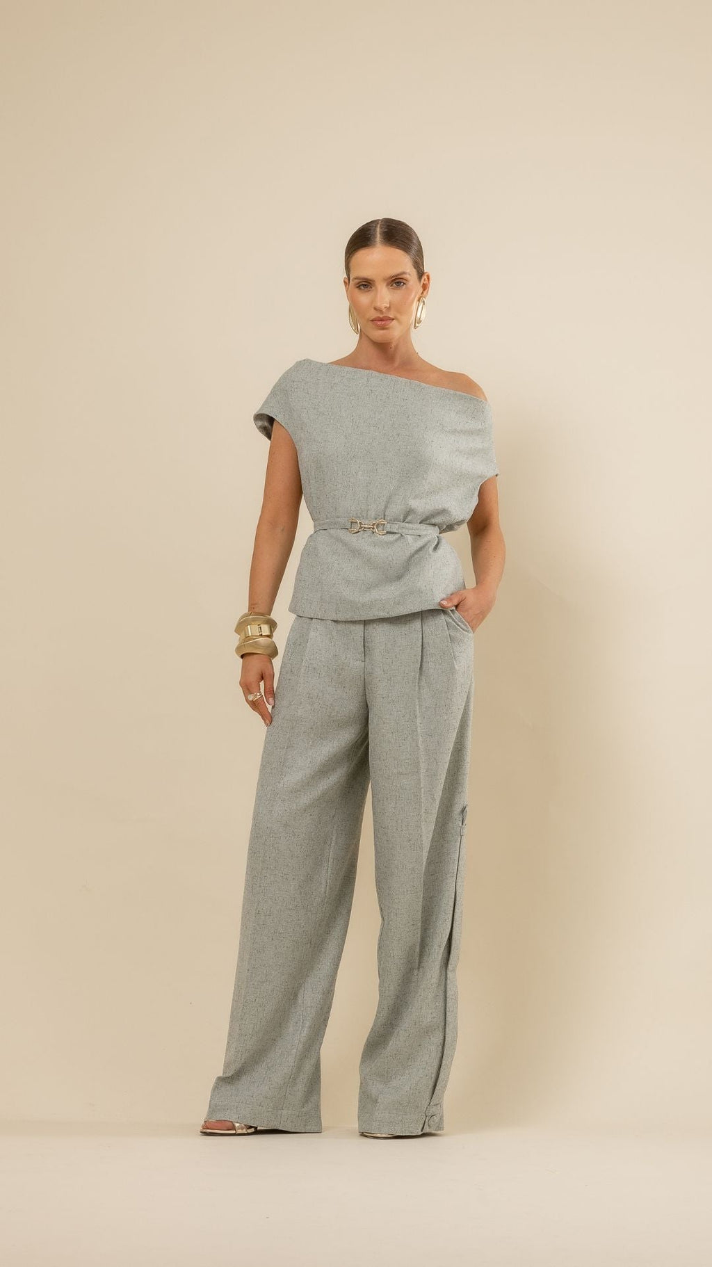 Combine a Blusa Ray com a Bermuda Ray para um conjunto leve e sofisticado, ideal para produções de verão. Para uma proposta mais moderna, use calça alfaiataria e elegante, um look que transita facilmente entre o casual e o elegante.