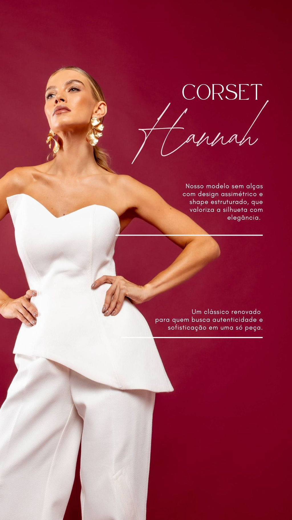 Nosso modelo sem alças com design assimétrico e shape estruturado, que valoriza a silhueta com elegância. Um clássico renovado para quem busca autenticidade e sofisticação em uma só peça.
