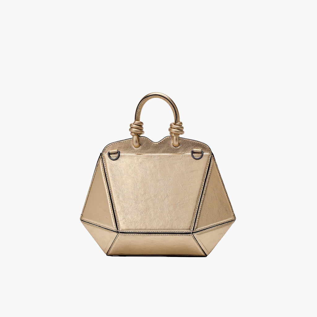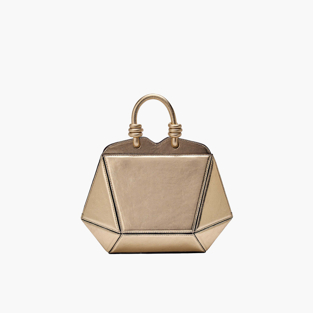 A Mini Bolsa Diamante celebra o quarto aniversário da Soleah com design exclusivo inspirado no símbolo da marca, que une a beleza das pedras naturais e das castanholas. Seu shape médio em formato de bauzinho traz a lateral com o desenho do diamante, combinando elegância e modernidade.