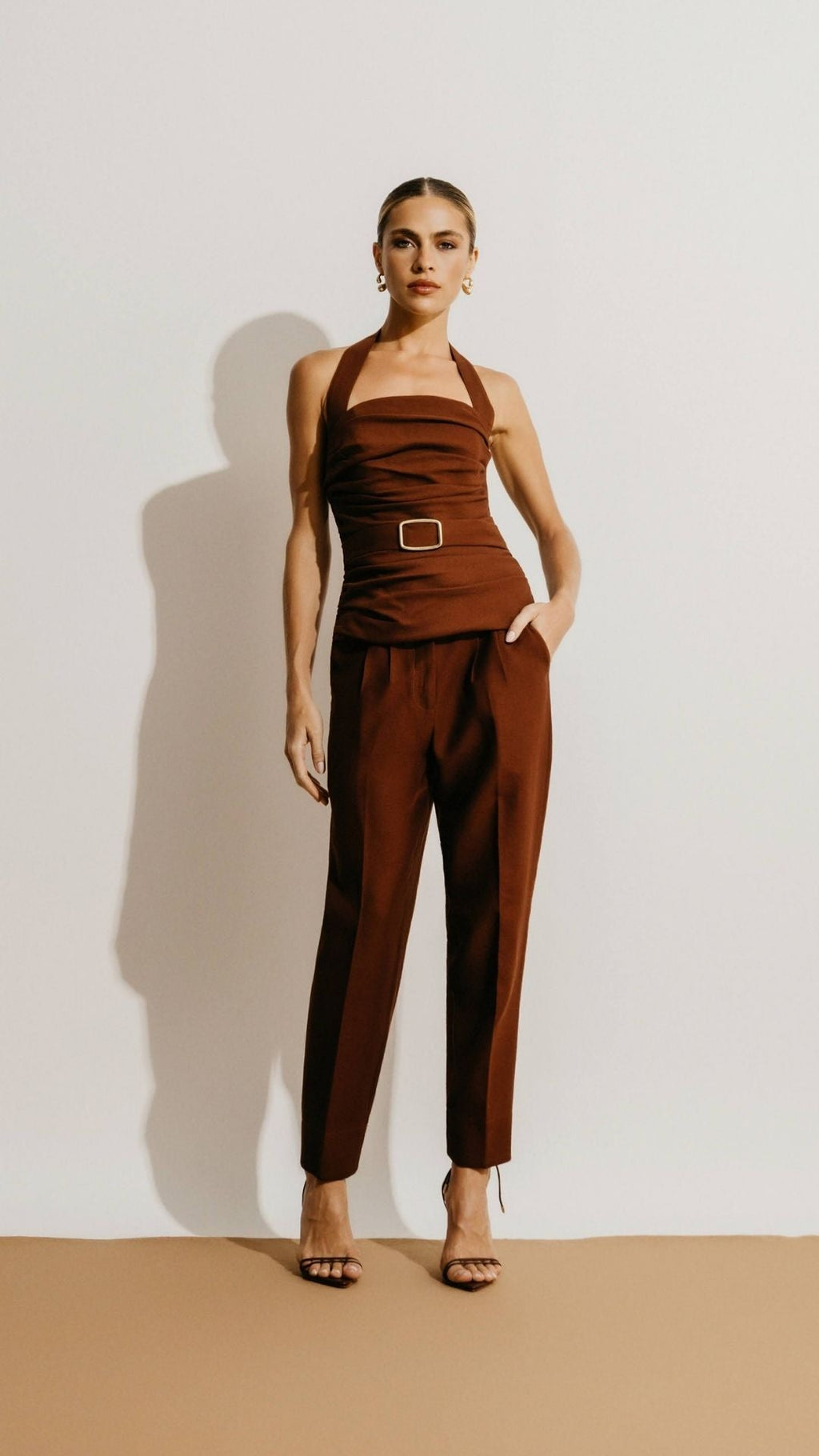 A Calça Nellie apresenta modelagem baggy com pregas frontais que garantem caimento sofisticado e confortável. A silhueta levemente ampla equilibra estrutura e fluidez, enquanto as aplicações em mini leopardo adicionam um toque contemporâneo à alfaiataria clássica. Uma calça feminina elegante que une tendência e atemporalidade.