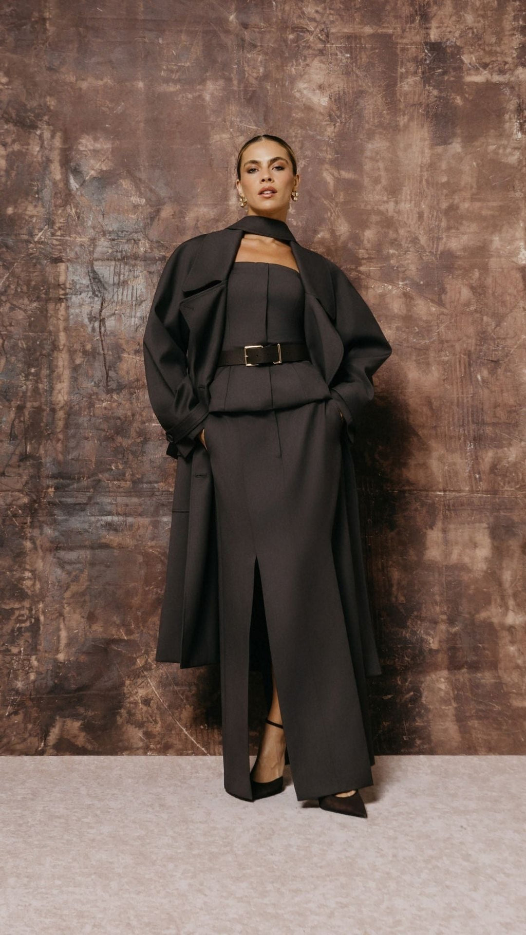 A Saia Longa Nora é uma saia de alfaiataria feminina com modelagem clássica NX e caimento estruturado. Possui bolsos traseiros e fendas estratégicas que proporcionam movimento e elegância. Uma peça sofisticada e atemporal para composições marcantes e modernas.