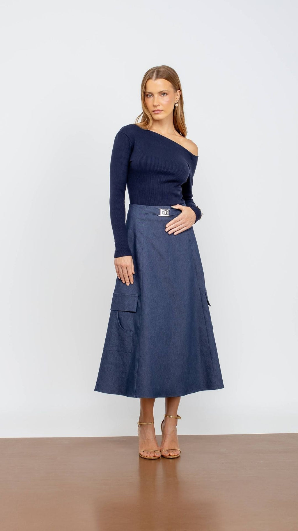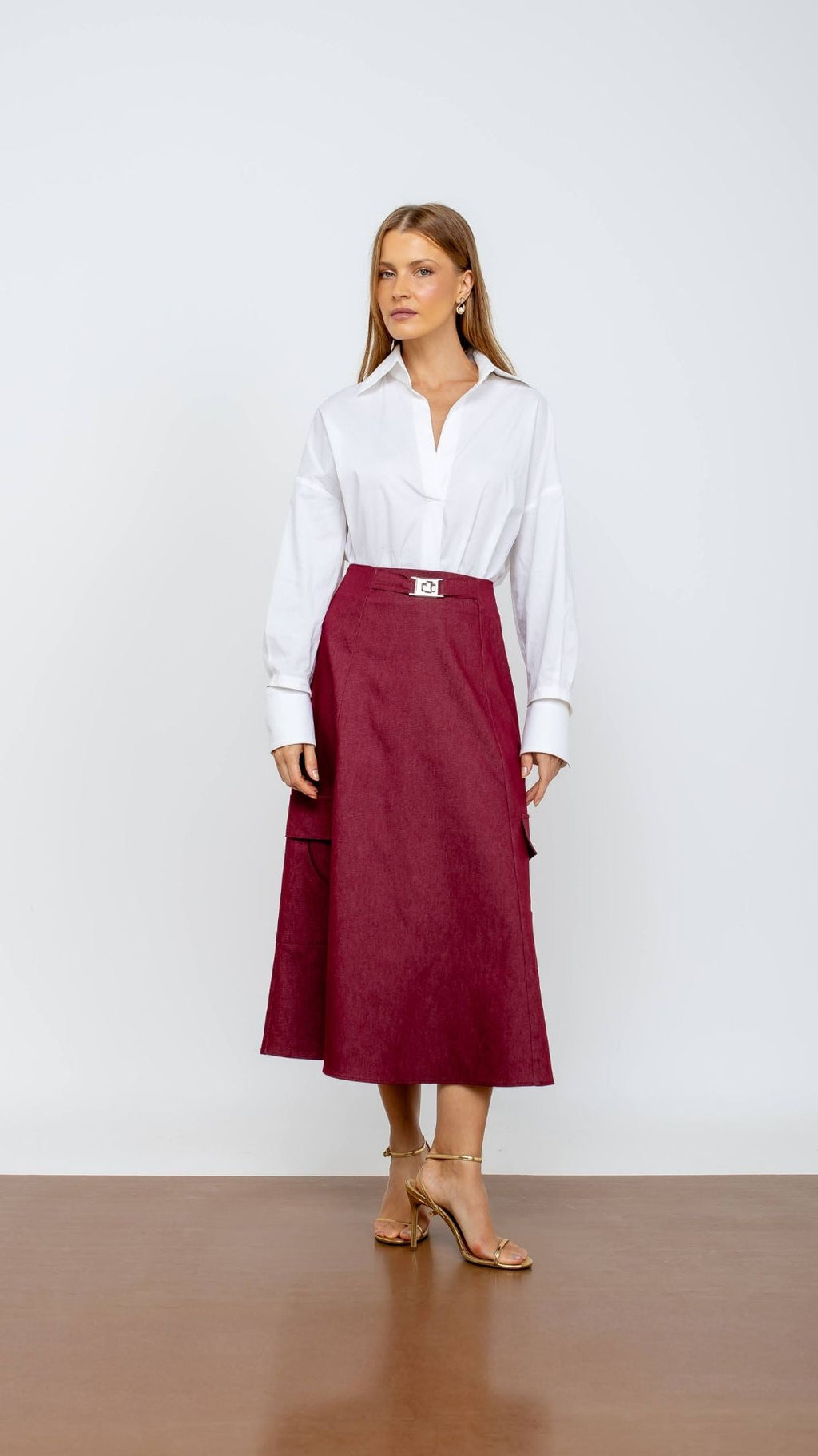 Com modelagem evasê e caimento impecável, a Saia Midi Cecilie traduzida elegante com um toque contemporâneo. Os bolsos laterais diferenciados adicionam charme e funcionalidade à peça, elevando o design com sofisticação sutil. Um modelo atemporal e versátil, perfeito para composições refinadas e cheias de personalidade.